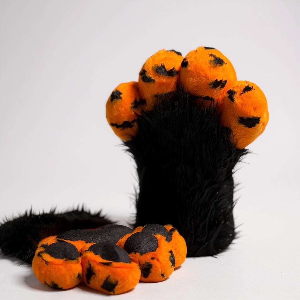 Cheetah faux fur has a short pile length and is made of high-quality faux fur. The dense and lush black faux fur is exceptionally soft and features fine guard hairs, paired with black Mink fabric for the paw pads.