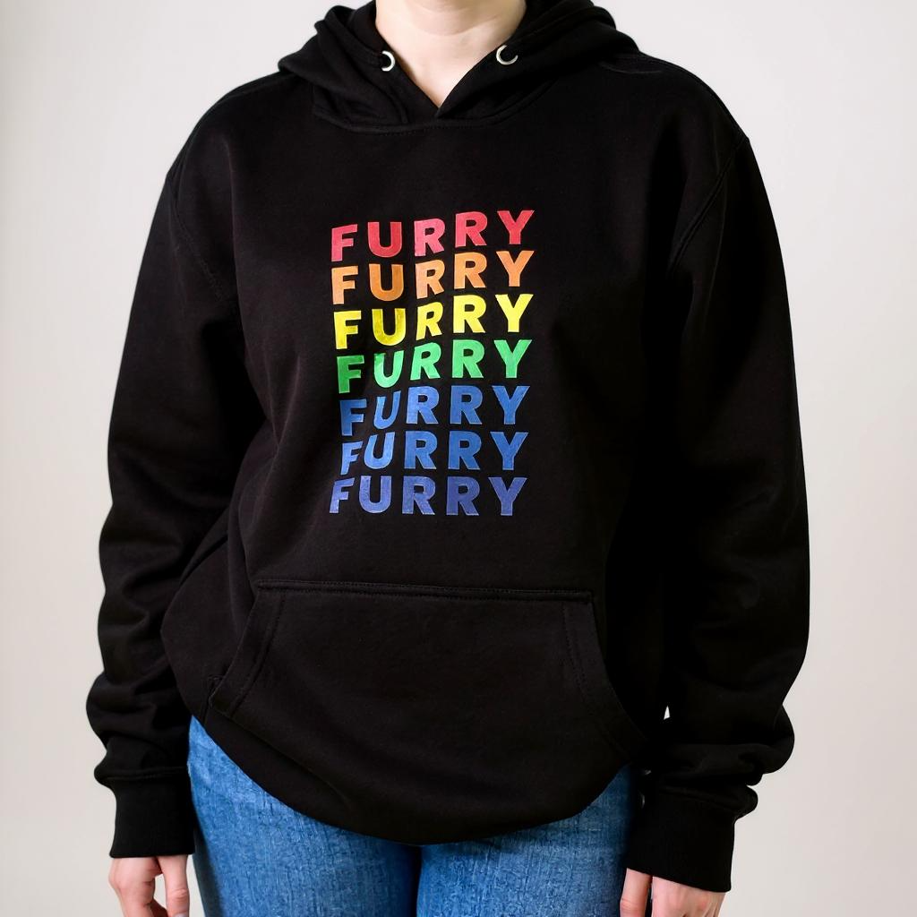 This Furry hoodie brings positive energyto any bad day! Featuring a lively rainbow design, this cozy sweater is crafted from a soft blend of cotton (60-80%) and polyester (20-40%), ensuring both comfort and style. Wrap yourself in positivity and let the cheerful colors lift your spirits!